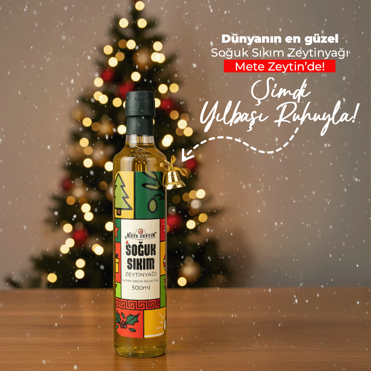 2026 yılına özel olarak hazırlanan Mete Zeytin Limited Edition Yılbaşı Cam Şişe, Gemlik bölgesinin seçilmiş zeytinlerinden elde edilen taze, meyvemsı, düşük asitli naturel sızma zeytinyağıdır.